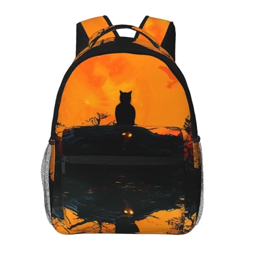HOT ! Casual Backpack for Women Men Cat in the Dark Lightweight Daypack Large Capacity Nurse Bag