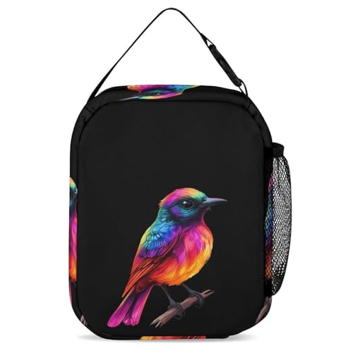 Colorful Bird Cute Print Backpack Set of 3 Portable Lunchbox Pencil Cases for Daily Travel 4