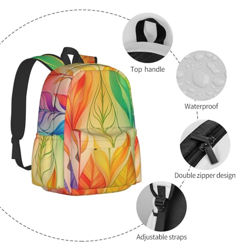 Travel Backpack for Women Men Rainbow Colors Gradient Leaf Casual Daypack Large Capacity Nurse Bag 5