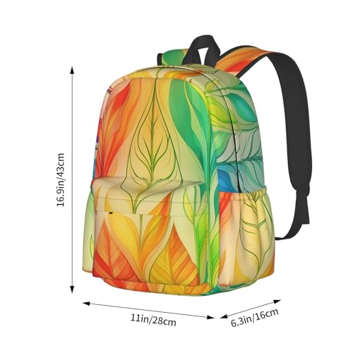More information about Travel Backpack for Women Men Rainbow Colors Gradient Leaf Casual Daypack Large Capacity Nurse Bag