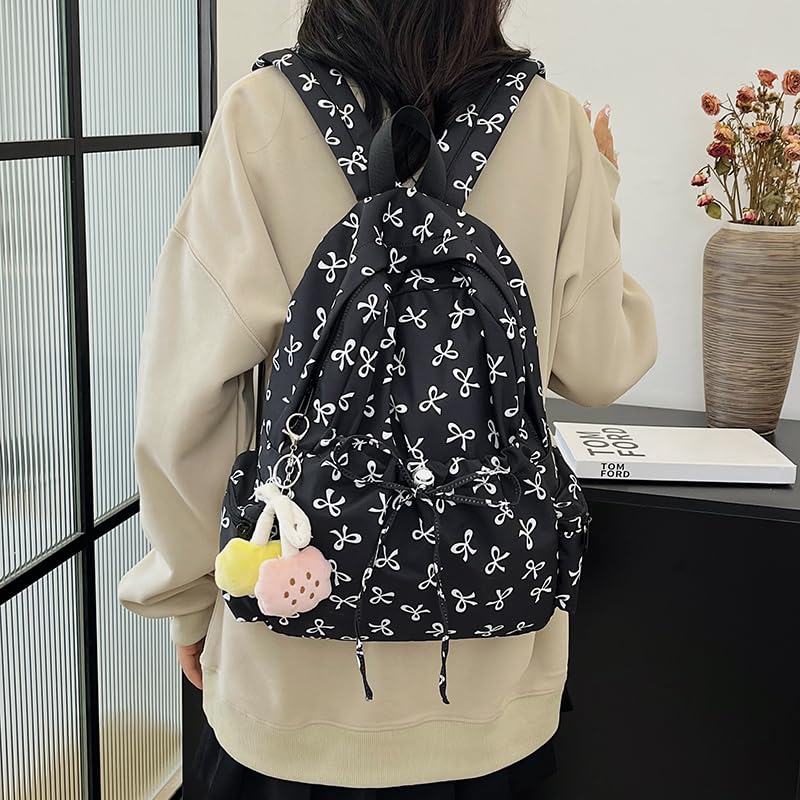 Cute Bowknot Backpack Lightweight Travel Daypack for Teens (Black Yellow) 1
