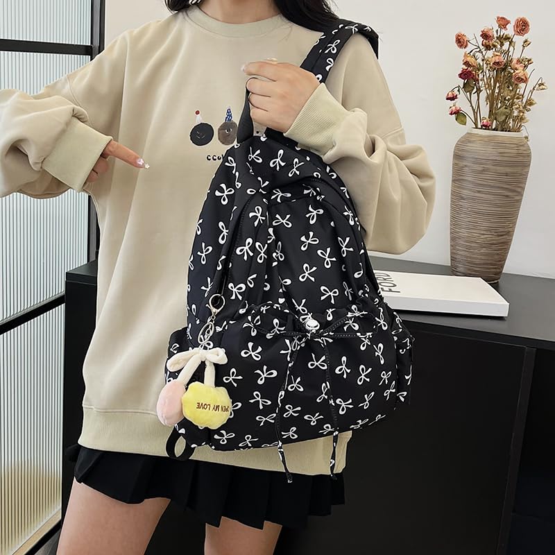Cute Bowknot Backpack Lightweight Travel Daypack for Teens (Black Yellow) 7