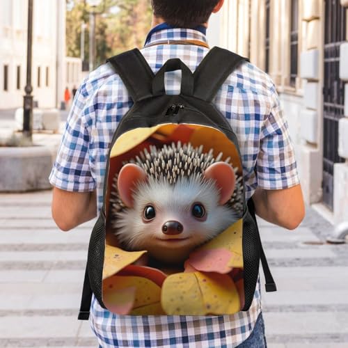 HOT ! Minimalist Unisex 16 Inch Backpack Hedgehog Fall Leaves Sleek Design for Simple Lifestyles Daily Carry & Errand