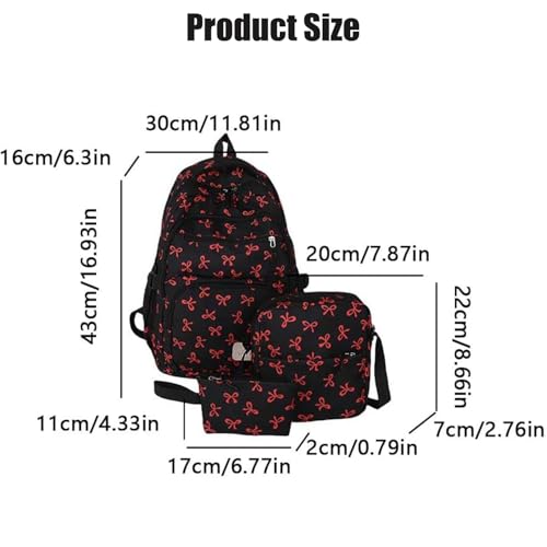Bow Backpack For Girls, Large Capacity Backpack 3pcs Set, Style Fashion Travel (Red) 3