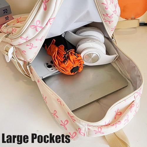Bow Backpack For Girls, Large Capacity Backpack 3pcs Set, Style Fashion Travel (Red) 6