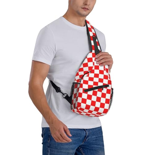 HOT ! Red White Checkered Chessboard Flag Sling Backpack Unisex Crossbody Chest Bag Shoulder Chest Bag For Women Men Hiking Travel