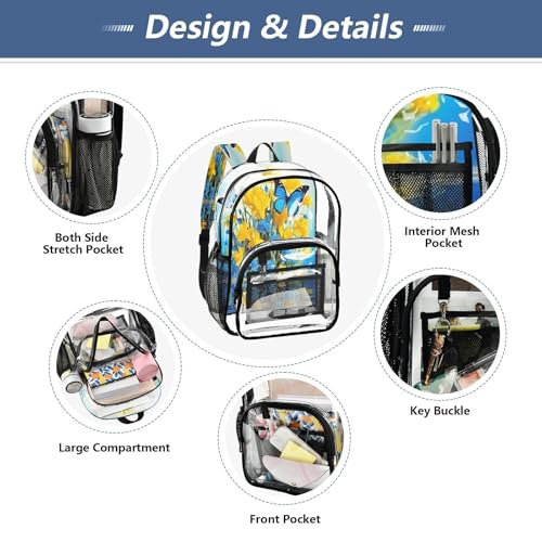 HOT ! Blue Beautiful Butterflies Clear Backpack - Stadium Approved Large 15.7-inch Waterproof Transparent Bag for Sports, Concerts, Work, Travel#133