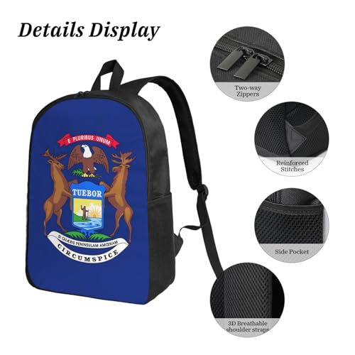 HOT ! Michigan State Flag print Shoulder Bookbags Lunch Bag and Pen Case 17 inches Backpack with Lunch Box, Cute Bookbag Set
