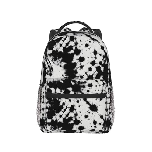 HOT ! Black And White Tie Dye Backpack Large Capacity Lightweight Casual Travel Sports Backpack 11.4X7.8X15.7 inch