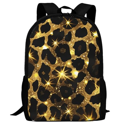 HOT ! Gold Black Glitter Leopard Print Backpack Large Capacity Backpacks Leisure Travel Daypack 12.5X5.5X16.5 inch