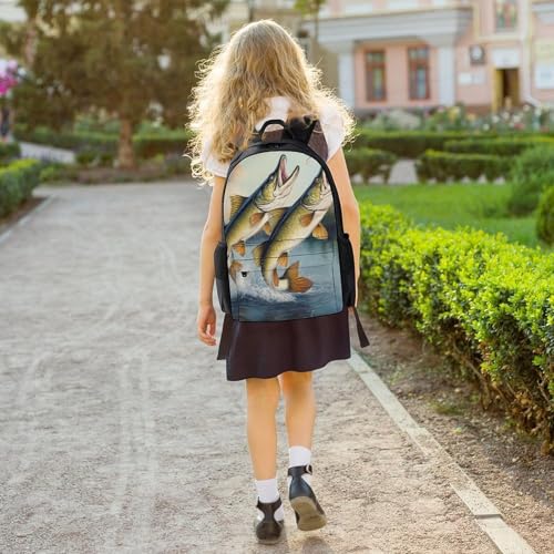 Supdreamc Men Women Polyester Two Bass Fish Jumping Out Of Water Painting Casual Daypack Large Capacity Carry On Bag With Adjustable Shoulder Straps for Camping Work Running 2