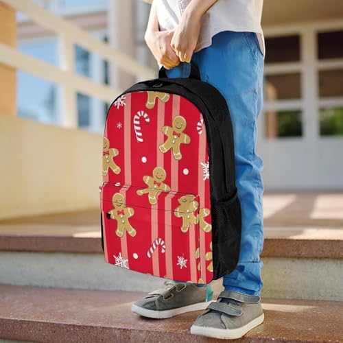 Supdreamc Rucksack Anti-Theft Multipurpose Big Capacity Carry On Bag - Christmas Red Gingerbread Cookies Candy Canes Traveling & Camping Backpack With Side Pockets 7