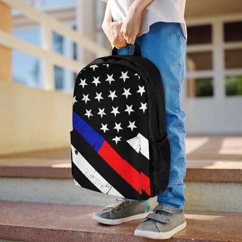 Supdreamc Men Women Polyester Thin Red Line And Blue Line American Flag Black Casual Daypack Large Capacity Carry On Bag With Adjustable Shoulder Straps for Camping Work Running 2