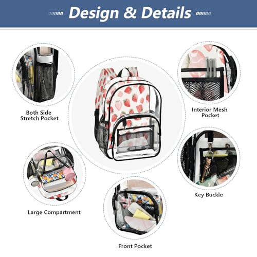 Cute Watercolor Strawberry Clear Backpack - Stadium Approved Large 15.7-inch Waterproof Transparent Bag for Sports, Concerts, Work, Travel#97 6