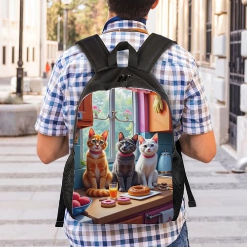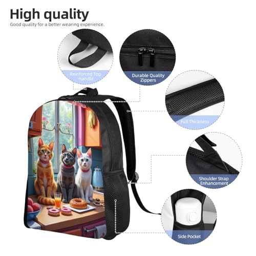HOT ! Comfort Fit Unisex Cats Kitchen Donuts and Fruit Backpack Durable for Daily Commute Travel Adventures 16 Inch