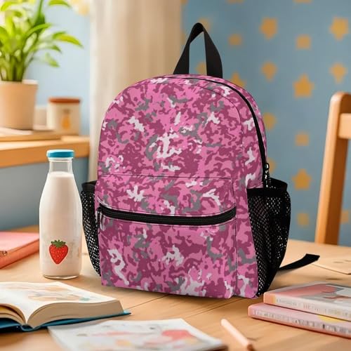 Camouflage Pink Camo 13 Inch Backpack Lightweight Double Shoulder Bag with Zippers Unisex Daypack 1