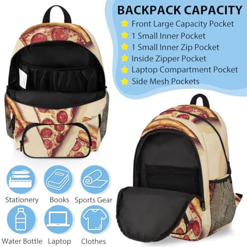 TropicalLife Pizza Backpack with Lunch Box Set, Back Pack and Lunch Bag Pizza Waterproof Casual Daypack Bag for Work Travel 7