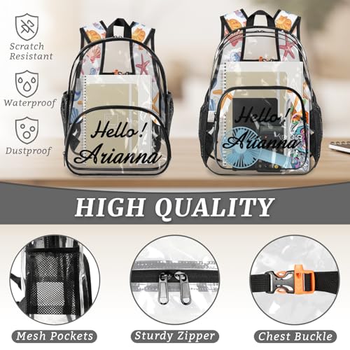 HOT ! Summer Beach Personalized Large Clear Backpack Heavy Duty for Stadium Approved Custom Seashells Starfish PVC Transparent Backpack with Name See Through Bag for Concerts
