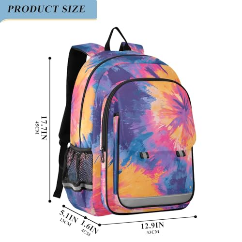 HOT ! senya Flower Tie-dye Backpack Water-Resistant Bag Lightweight Bookbags with Reflective Strip