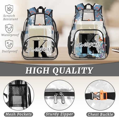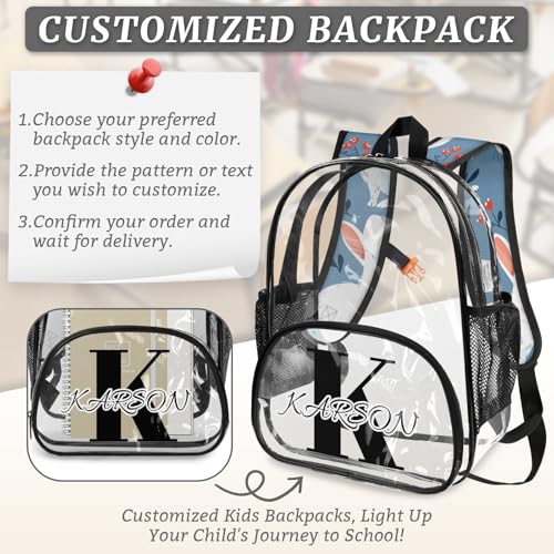 • PERSONALIZED CLEAR BAG: Each clear backpack strap is printed with exquisite patterns. Various patterns are available for you to choose from. Please click the "Customize Now" button and enter the name you want to customize