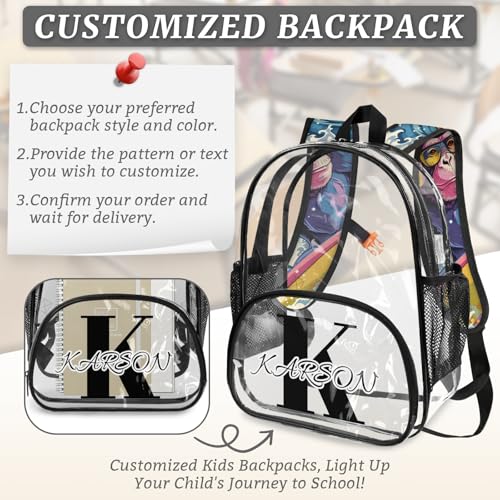 • PERSONALIZED CLEAR BAG: Each clear backpack strap is printed with exquisite patterns. Various patterns are available for you to choose from. Please click the "Customize Now" button and enter the name you want to customize