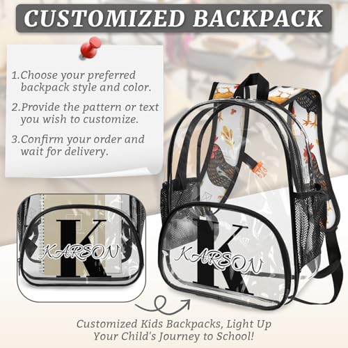 Personalized Small Clear Backpack Stadium Approved Heavy Duty PVC Plastic Custom Chicken Transparent Backpacks See Through Bag with Name, Cock Hens Rooster 7