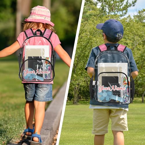 • PERSONALIZED CLEAR BAG: Each clear backpack strap is printed with exquisite patterns. Various patterns are available for you to choose from. Please click the "Customize Now" button and enter the name you want to customize