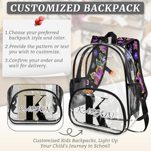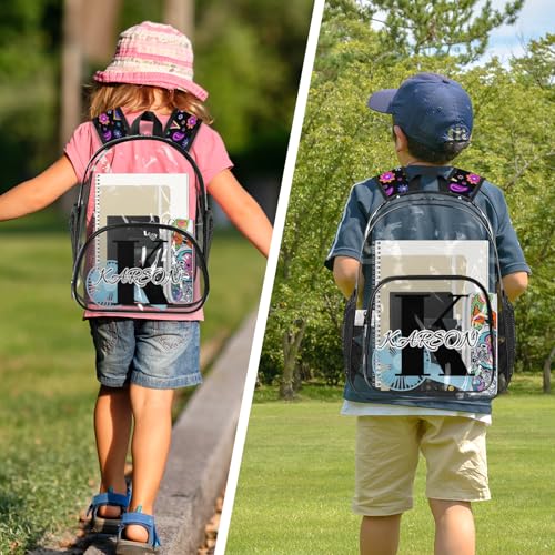 • PERSONALIZED CLEAR BAG: Each clear backpack strap is printed with exquisite patterns. Various patterns are available for you to choose from. Please click the "Customize Now" button and enter the name you want to customize