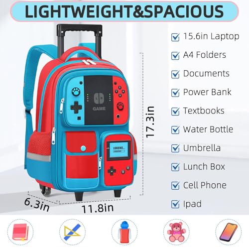 • 【GAME ROLLING BACKPACK FOR BOYS】 This rolling backpack for boys, sized at 17.3"x6.7"x12.2", is ideal for school boys who love standout style! The rolling backpack eye-popping game print guarantees major kid appeal—making school runs way more fun!