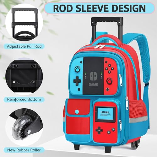 More information about Kids Rolling Backpack for Boys - Gamer Boys Rolling Backpack with Wheels, Wheeled Travel Bookbag for Elementary Middle School, Lightweight Roller School Bag