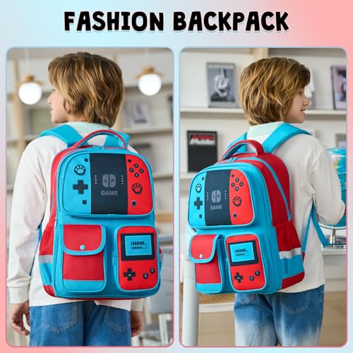 Backpack for Boys Bookbag Video Game Bookbag stylish kids travel backpack for boys 6-18, Kids Junior High School Primary School Back pack (Red-blue) 6