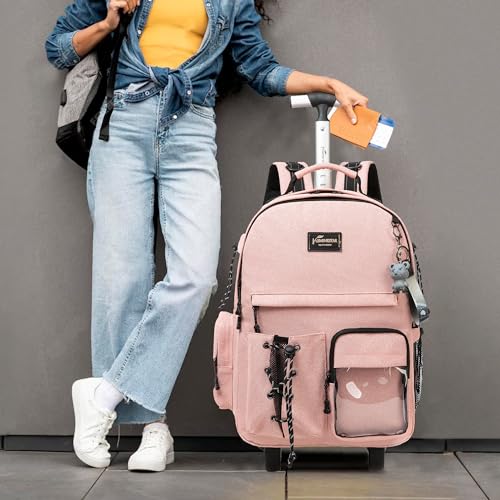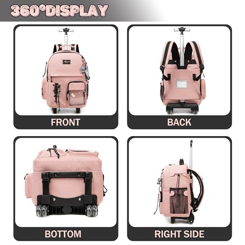 Rolling Backpack for Girls Backpack with Wheels with Lunch Box Set 3 in 1 Wheeled Backpacks for school Backpacks for Teens Girls Pink Schoolbag for Kids Back to School Supplies 5