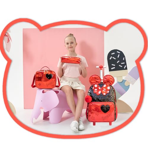 Meetbelify Rolling Backpack for Girls Backpacks with Wheels for Elementary School Students Kids 3 in 1 Travel Luggage Suitcase with Lunch Box Pencil Case for Girls Age 8-10 4