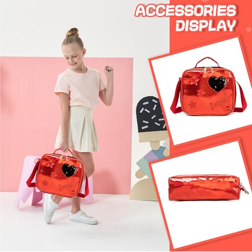 • [Kids Rolling Backpack Size]backpack:16.5"x11.8"x7.8",lunch bag:9"x8.2"x3.9",pencil case:9".Plush love pendant is included.Multi-function for kids,as a luggage to reduce load,or as a backpack,or a handbag with a handle on the top of backpack.