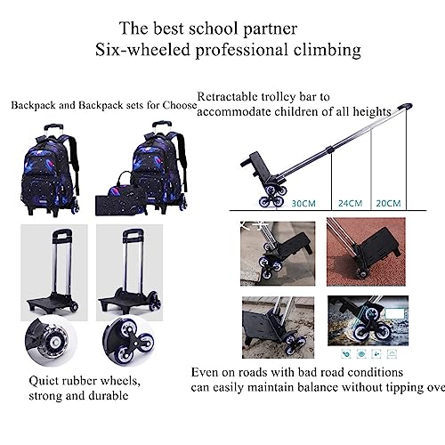 • 【Cool Galaxy Rolling Backpack for Boys&Girls】Teens girls backpack with cool galaxy, so that the students backpack is more fashionable and funny, our backpack set to meet girls and boys heart, kids backpack with black/blue backpack design,Give you a new exprience!