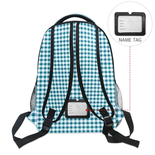 Backpacks for School, Blue Gingham Check Pattern School Bag for Boys Girls Kids, 17 Inch Bookbags Bagpack for Travel Classroom 5