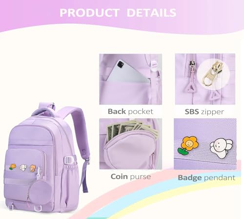 • Amazing Gift Set– This backpack for school teens comes with the cute coin purse,pins and pendant, which is a perfect gift for teens girls,women. Surprise to them and exceed their expectation. If you have any question , please feel free to contact us, and we will help you to solve it.