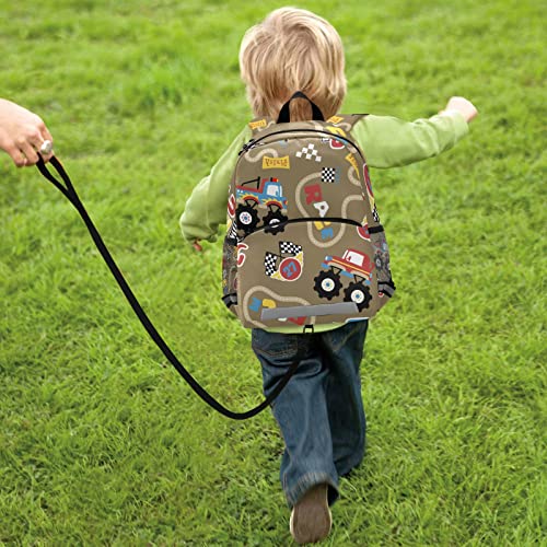 VIGTRO Monster Truck Kid's Toddler Backpack with Safety Leash for Boy & Girl, Cartoon Lightweight Preschool Book Bag, Ideal Size Waterproof Kindergarten Schoolbag for Children 13inch 1