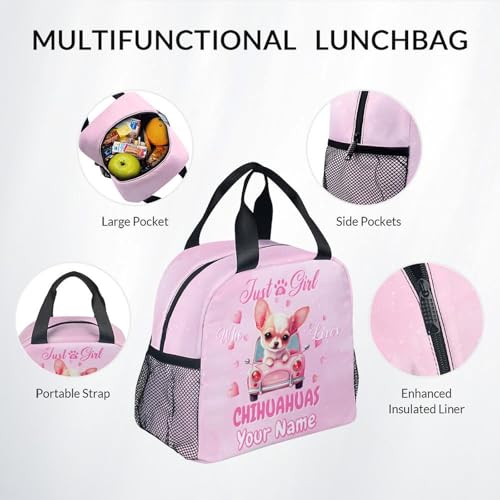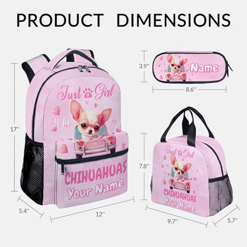 UNIKITTY Girls Backpack with Lunch Box - Custom Backpack for School - Personalized Chihuahua Schoolbag with Pencil Case - 17 Inch Girls Bookbag for Kindergarten Elementary 1