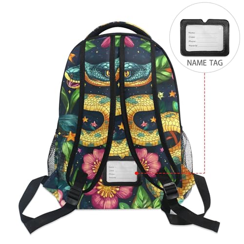 Snakes Flowers Colorful Backpack Laptop Tablet Travel School Bag with Name Tag for Boys Girls Teens 6