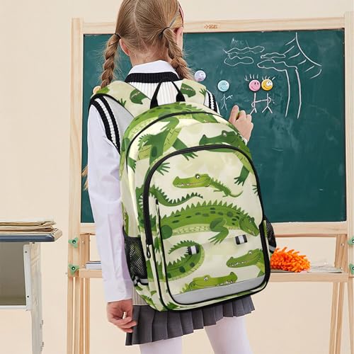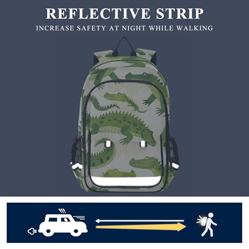 Alligators Green Crocodile School Backpack Laptop Travel Backpack for Kids Girls Boys, Computer Notebooks Bookbag with Reflective Stripes 6