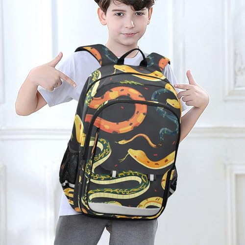 HOT ! Cartoon Snake Animals Black Backpack School Backpack with Reflective Stripes, Lightweight Laptop Backpack Students Book Bag