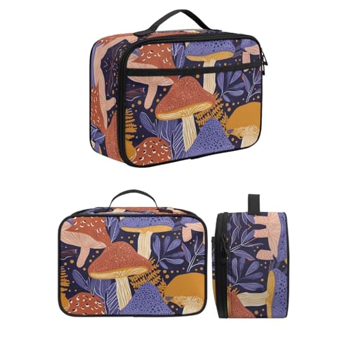 HOT ! Mushroom Backpack for Girls Padded Back Straps Lightweight 17 Inch School Backpack with Lunch Box for Girls Flower Print Bookbag Black School Bag