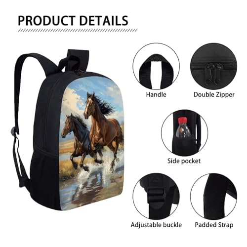 Kids Lightweight Backpack Girls Boys Horse Print School Bag with Lunch Box Pencil Case Water Bottle Sleeve 4 in 1 Book Bag Teen Animal Schoolbag Set Insulated Lunc Tote Camping Sling Bag 3