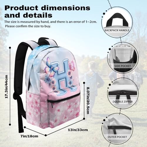 WELLFLYHOM Butterfly Custom Name School Bag for Girls 17 Inch Laptop Backpack Initial H Cherry Blossom Personalized Bookbag Daypack for Junior High School Students 6