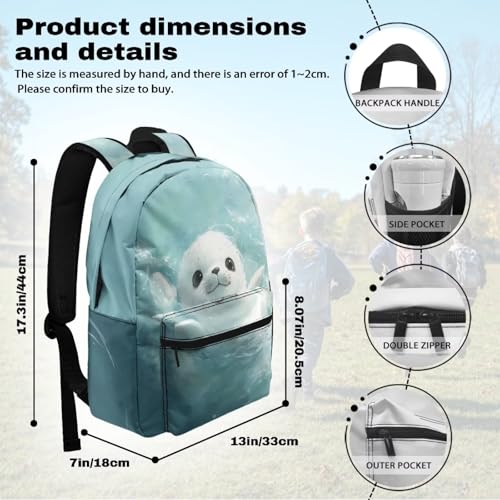 More information about Cartoon Seal Backpack for School Kids 6-8 Ocean Theme School Backpack for Girls Kindergarten Preschool Large Capacity School Bag with Side Pockets Casual Bookbag for Travel