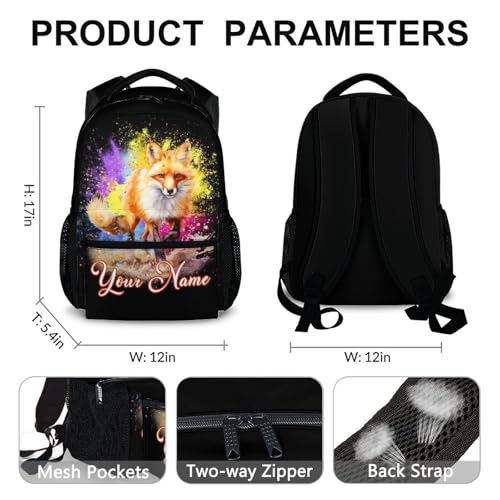HOT ! Personalized Backpack for School - Fox Backpacks for Girls Boys - 17 Inches Large Capacity Custom Animals Bookbag for Kindergarten Preschool Elementary