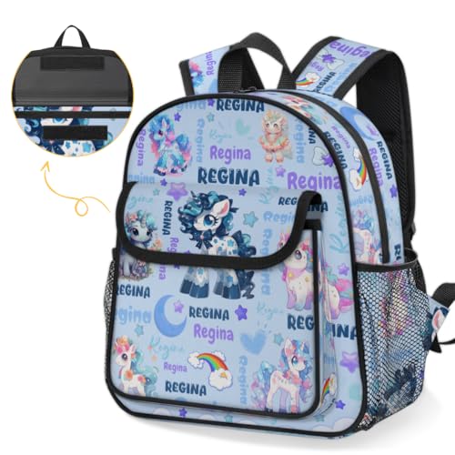 HOT ! Personalized-Toddler-Backpack - Custom Kids Backpack for Boys & Girls 3-6 Years, Lightweight Polyester with Safety Whistle Strap, Small Daycare Bookbag | Cute Unicorn Blue
