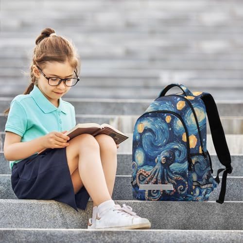 More information about Van Gogh Octopus Lamp Starry Night School Backpack for Girls Boys Elementary Middle School Book Bag Teens Kids Casual Travel Daypack Student Knapsack