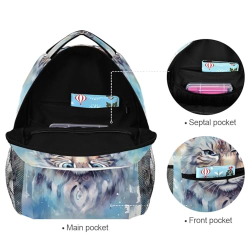 ALAZA White Cat Blue Tie Dye Backpacks for Girls Boys Elementary School Bag Kids Bookbag Personalized Travel Daypack 3rd 4th 5th Grade Rucksack 16in 4